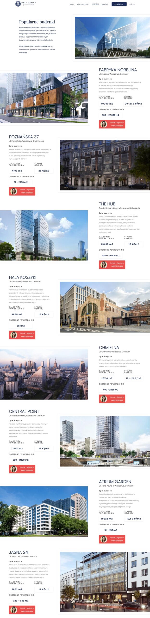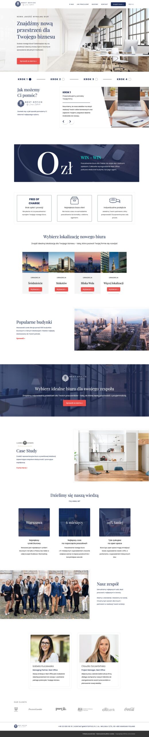 Next Office, a side project by Lions Estate, needed a seamless and professional website to promote exclusive office spaces in Warsaw’s most sought-after properties. Using a graphic design proposal as the foundation, we created a static website that balances simplicity and functionality.